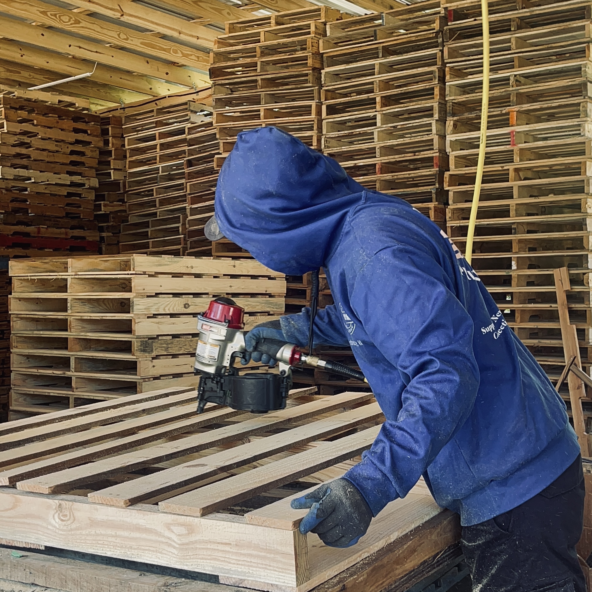 Our company offers high-quality new pallets, crafted from durable materials to meet your pallet needs. We build new pallets using manual nailing tables, ensuring precision and strength.